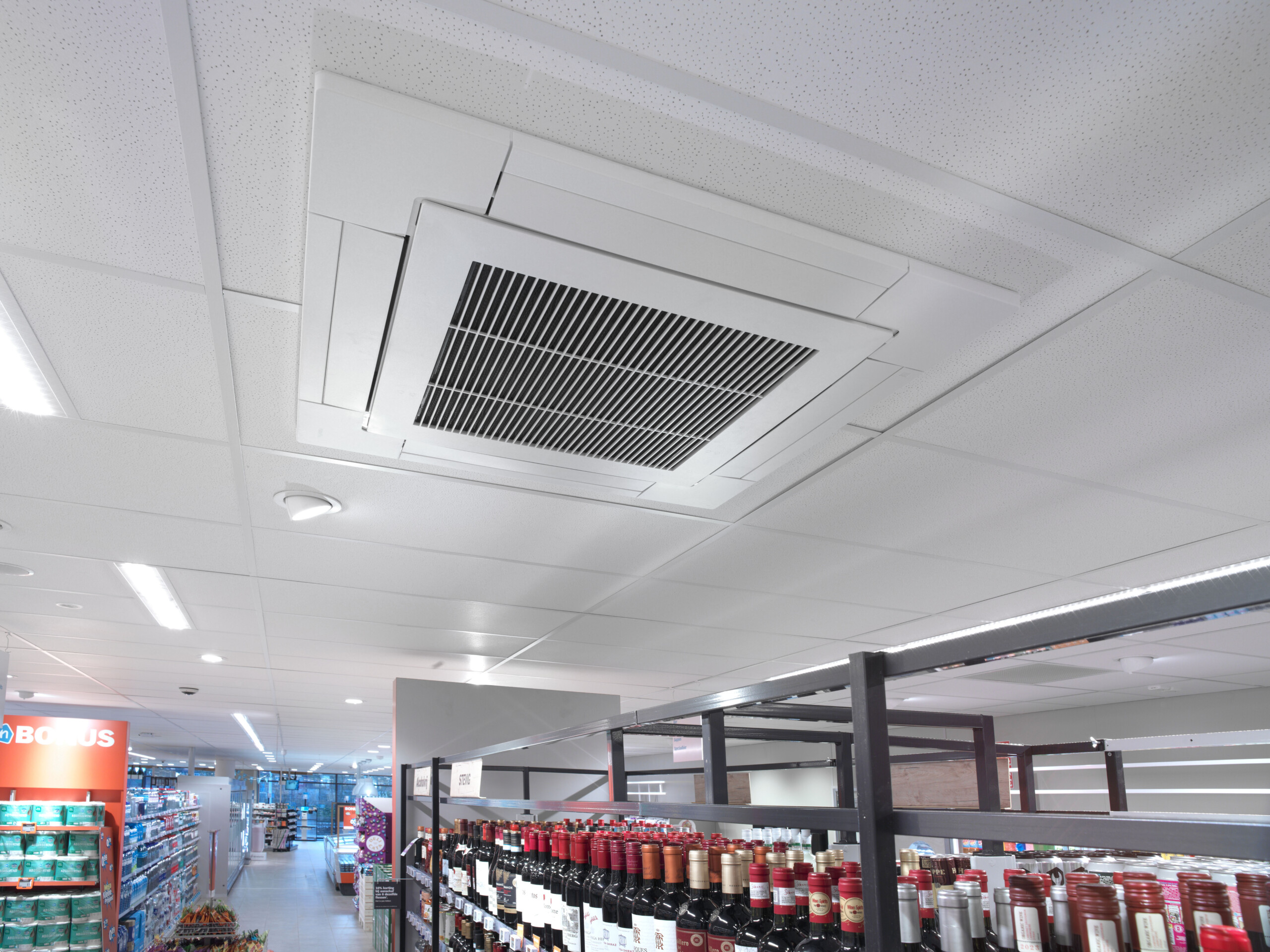 In onze leveringsomvang name we ook de winkelverwarming mee. De basis van ons gasloze verwarmingssysteem ligt bij de centrale koelinstallatie. We gebruiken de warmte die ontstaat in het koelproces, eigenlijk een restproduct, als duurzame warmtebron. Met een false load verdamper die we op het dak plaatsten garanderen we voldoende verwarmingscapaciteit, ook op de piekmomenten.