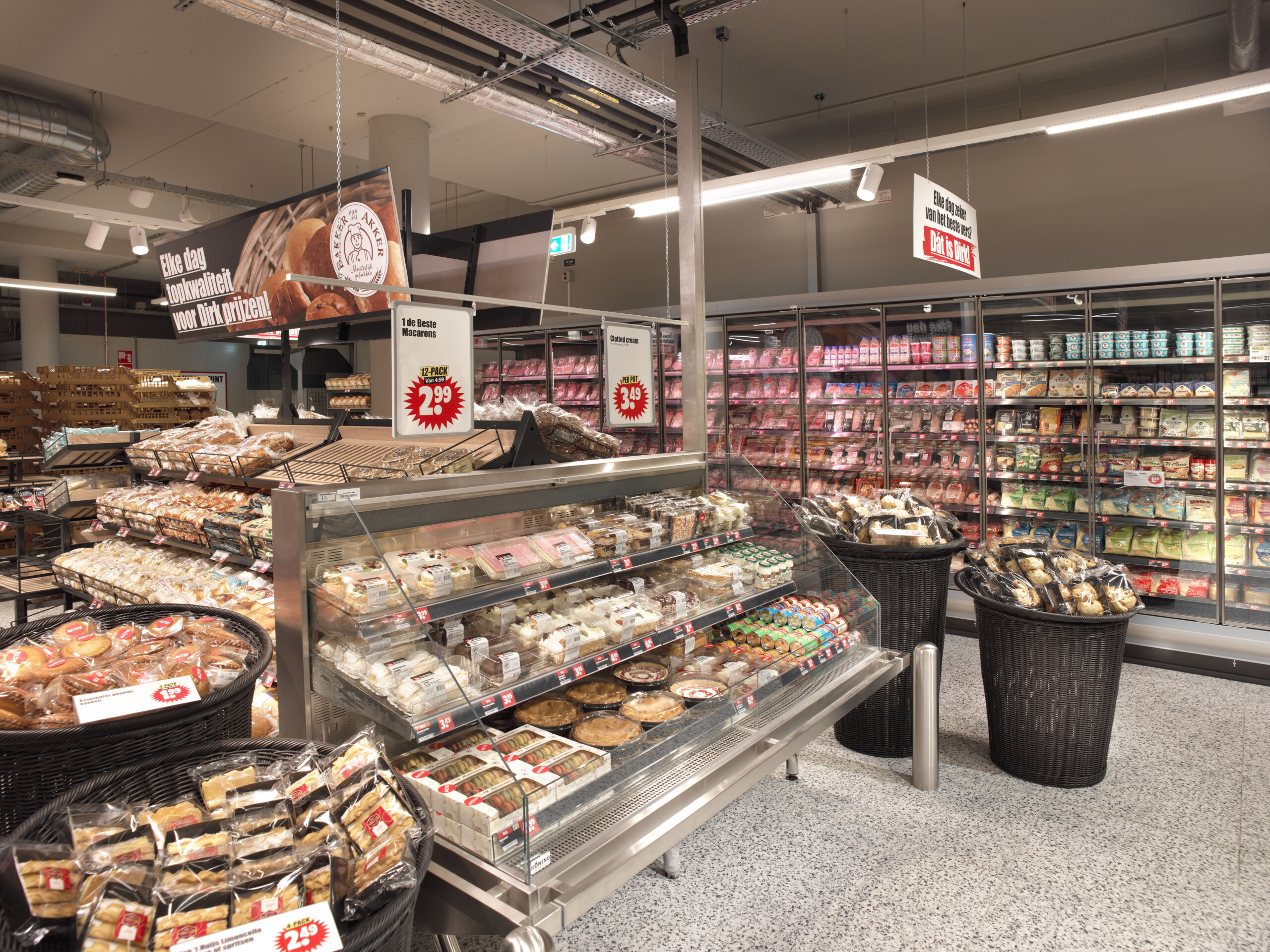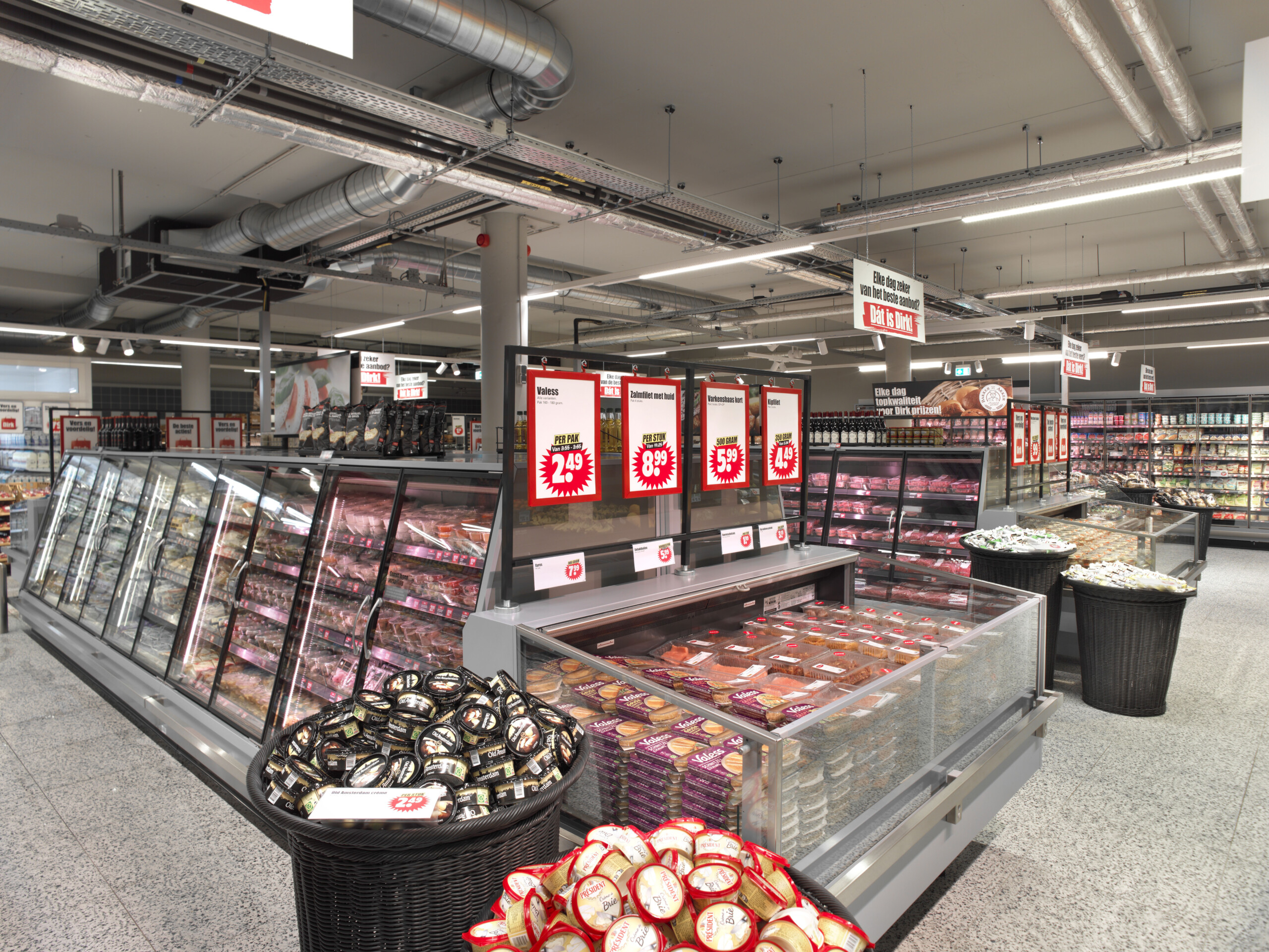 Ruime winkelindeling met nieuwe en energiezuinige koel- en vriesmeubels.