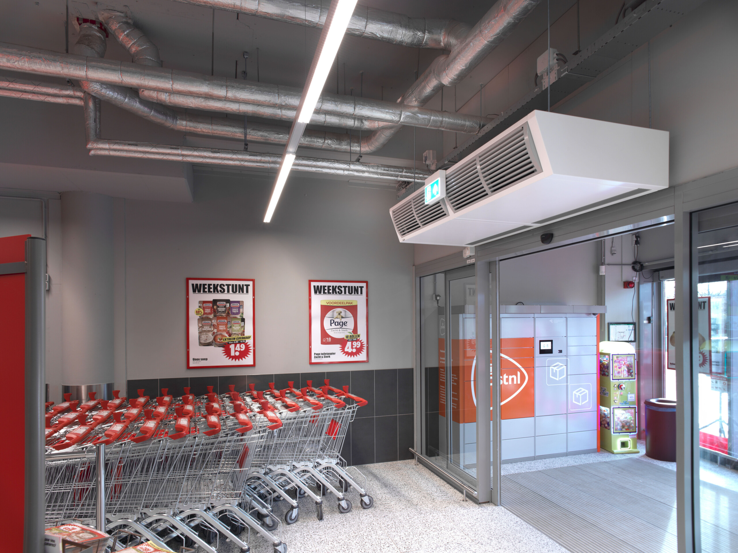 De koelinstallatie is óók de centrale motor voor het verwarmingssysteem. Tijdens het koelproces wordt warmte gegenereerd, die normaal gesproken wordt afgevoerd naar de buitenlucht. Wij gebruiken die warmte liever als slimme energiebron voor de winkelverwarming; gasloos en milieuvriendelijk! Met aanvullende warmtepompen voor de kantoren en kantine maakten ons verwarmingssysteem compleet.