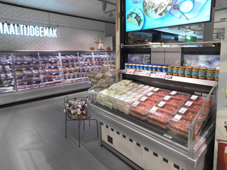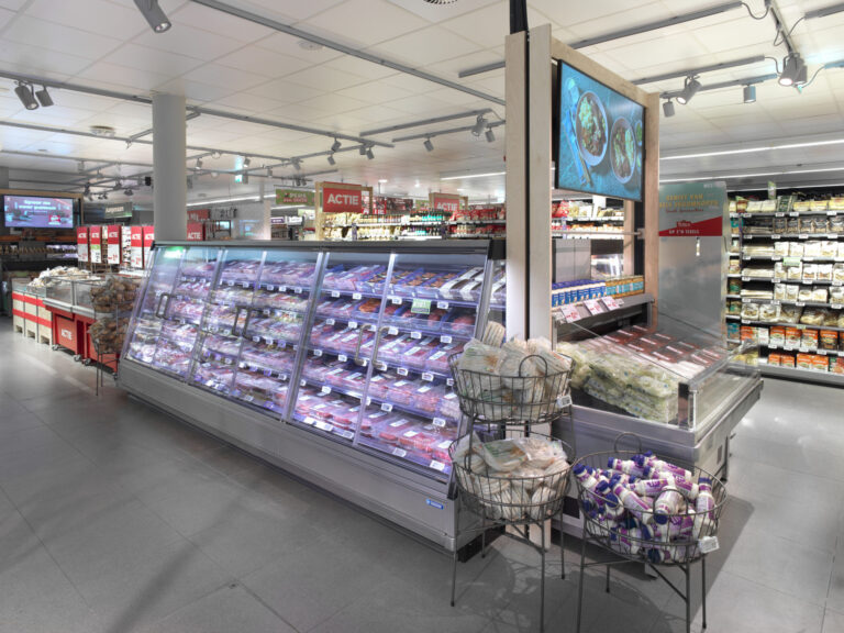 De winkelvloer wordt gesierd door nieuwe koel- en vriesmeubels. Vanwege de vernieuwde routing pasten we ook al het leidingwerk aan.