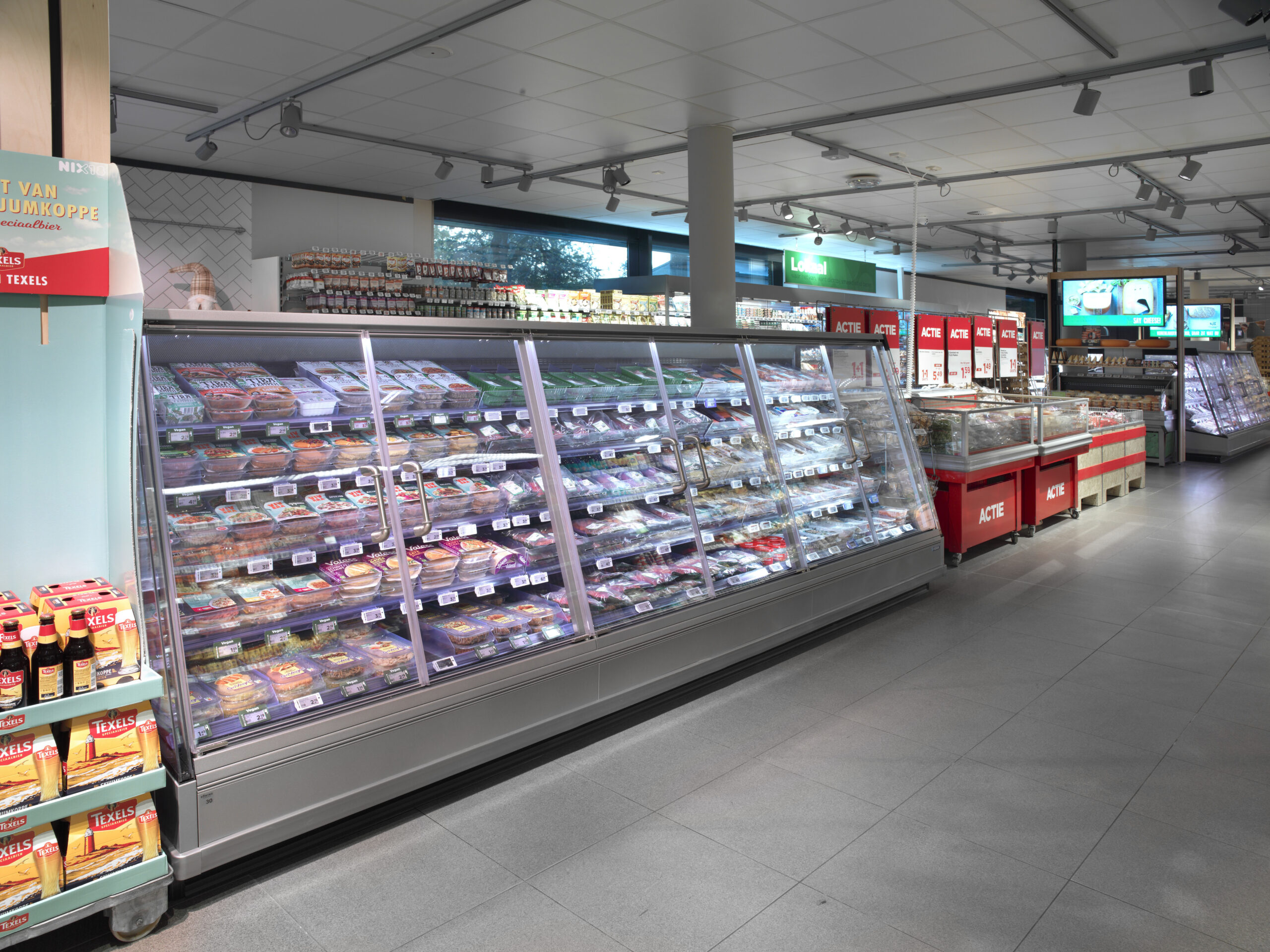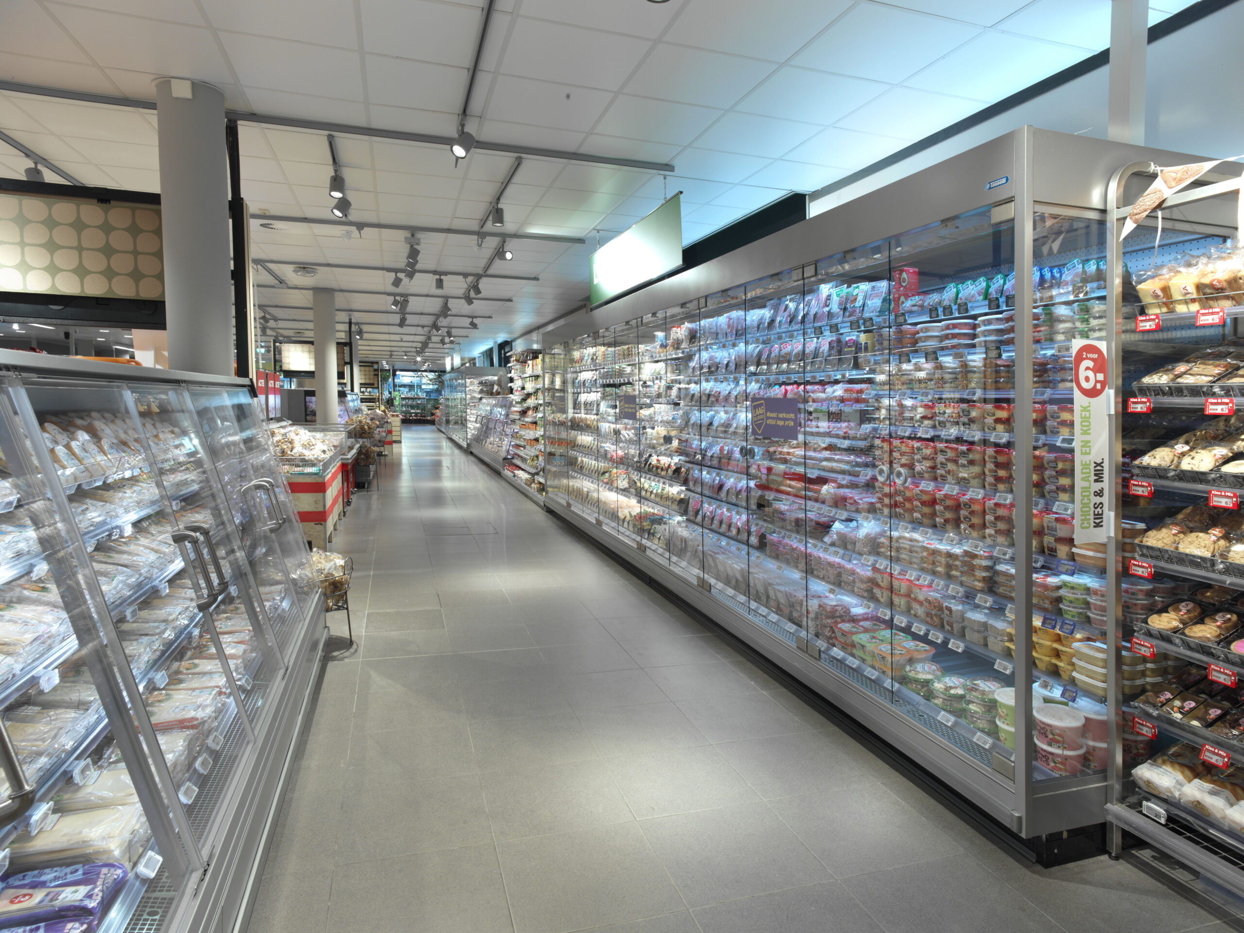 De winkelvloer wordt gesierd door nieuwe koel- en vriesmeubels. Vanwege de vernieuwde routing pasten we ook al het leidingwerk aan.
